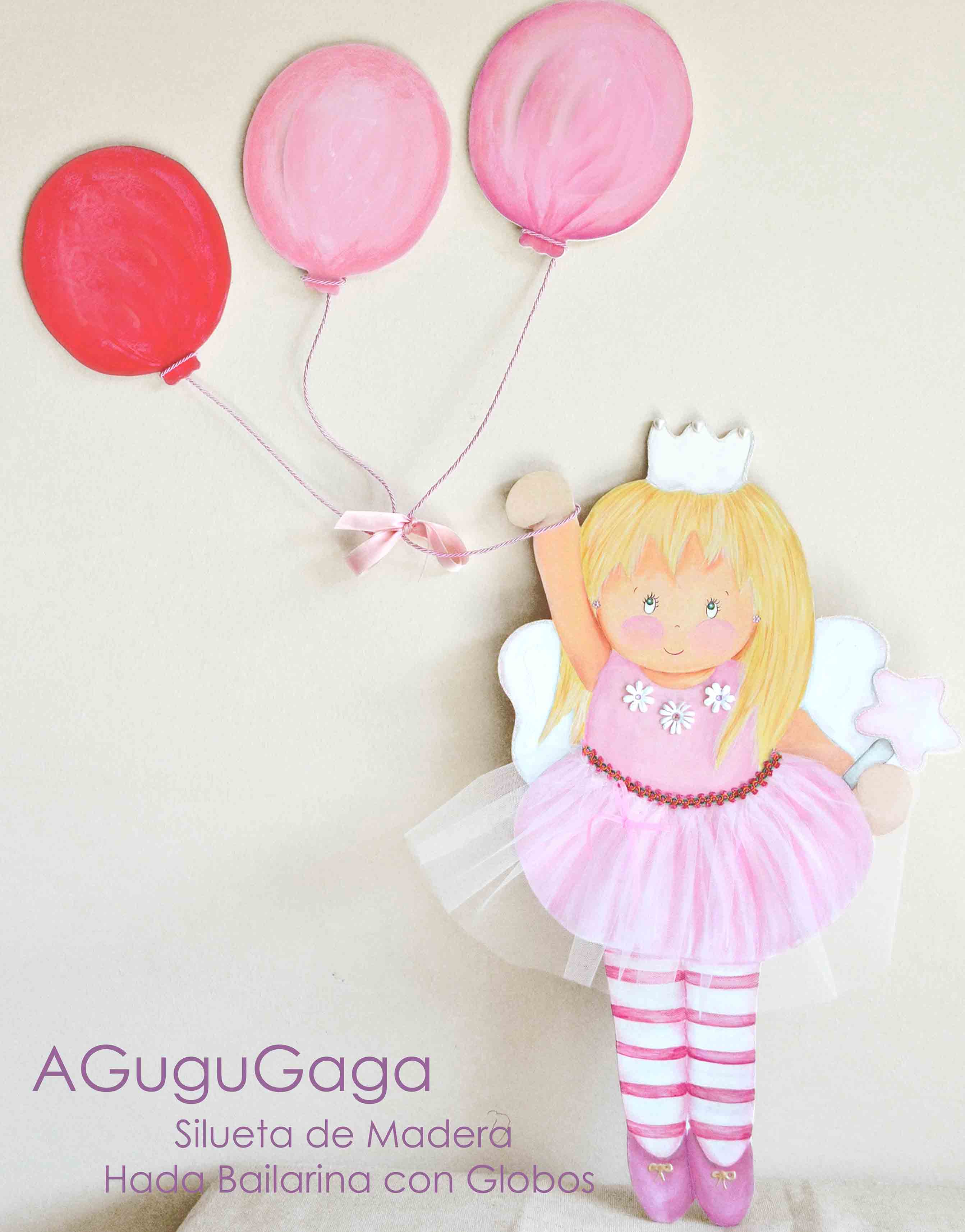 Esta SILUETA INFANTIL HADA CON GLOBOS es una silueta de madera muy original porqué mezcla el mundo de las hadas con el ballet, por lo que resulta ideal para decorar la habitación de una niña. Incorpora muchos detalles en relieve como el tutú de tul, las flores del vestido, las perlas en la corona y la cuerda del globo.