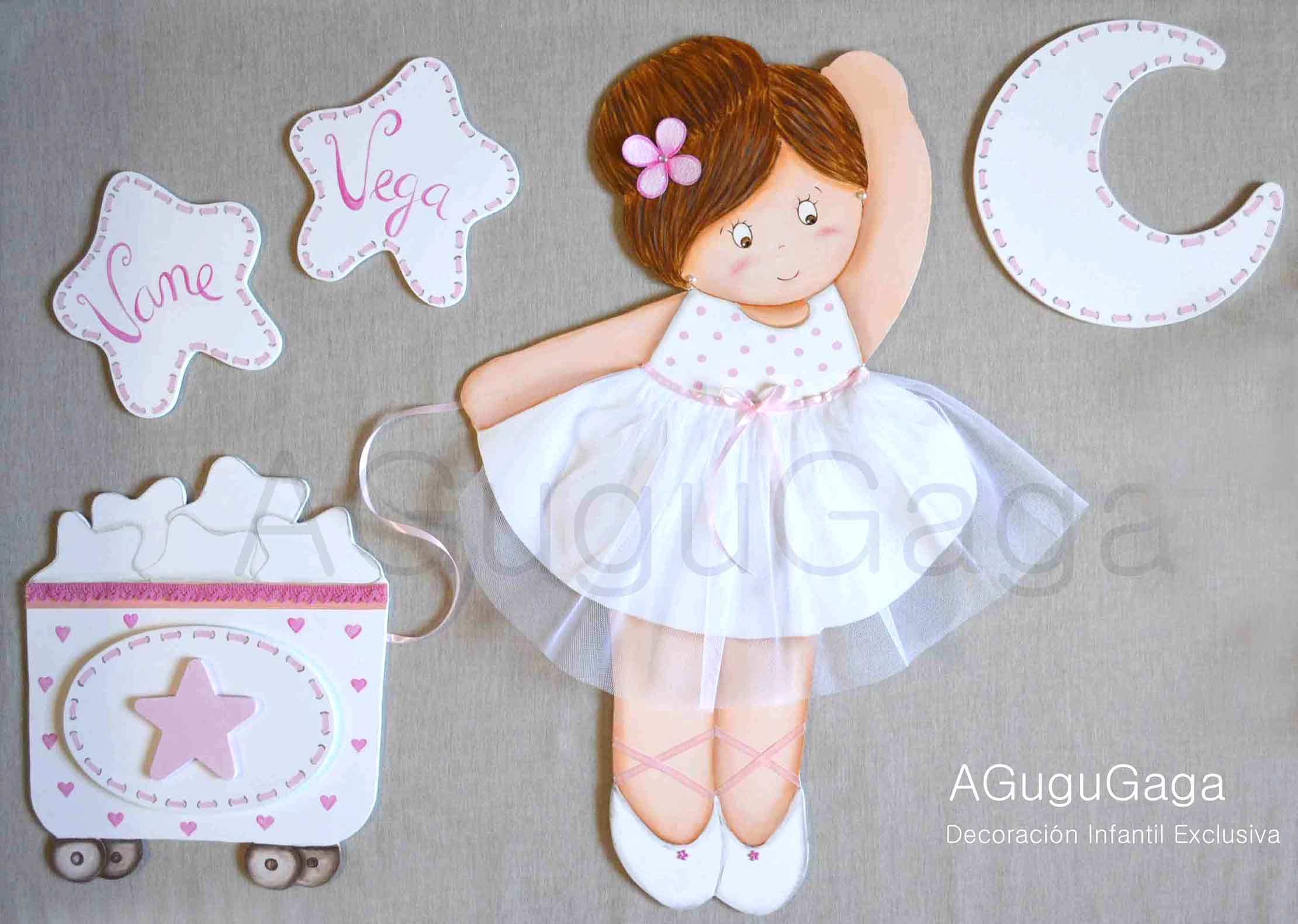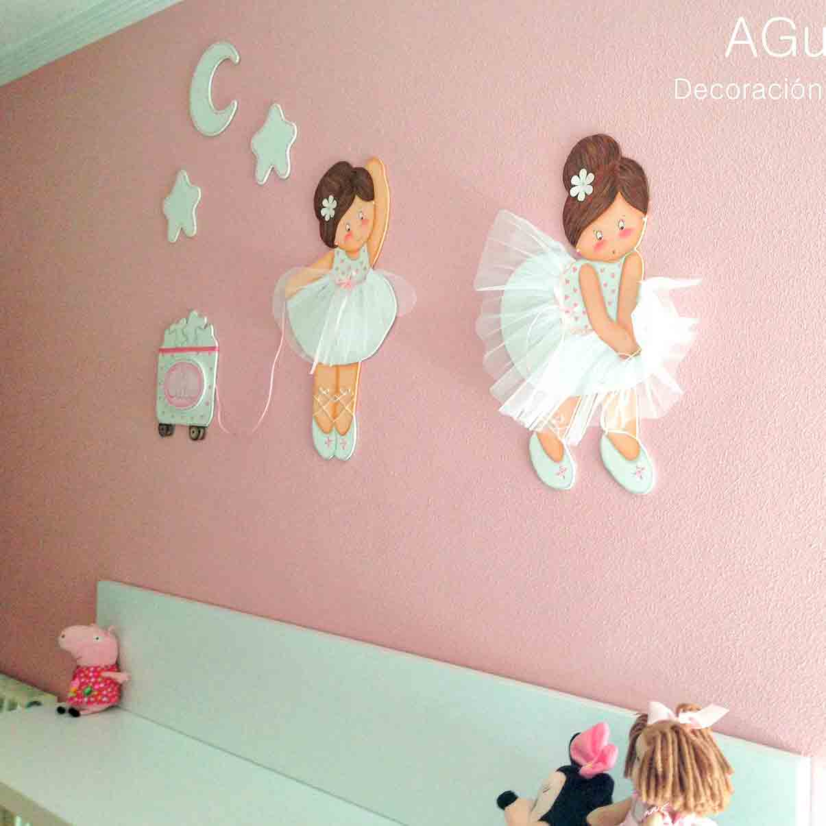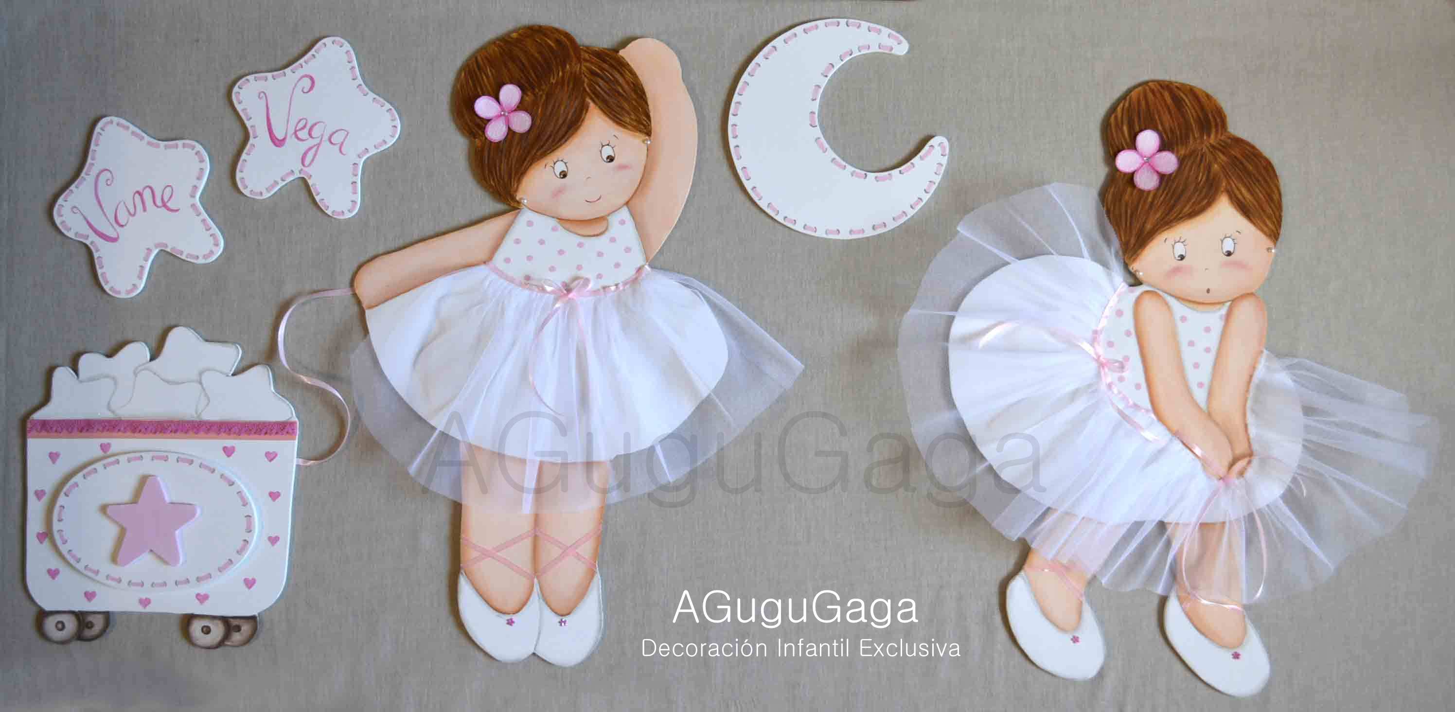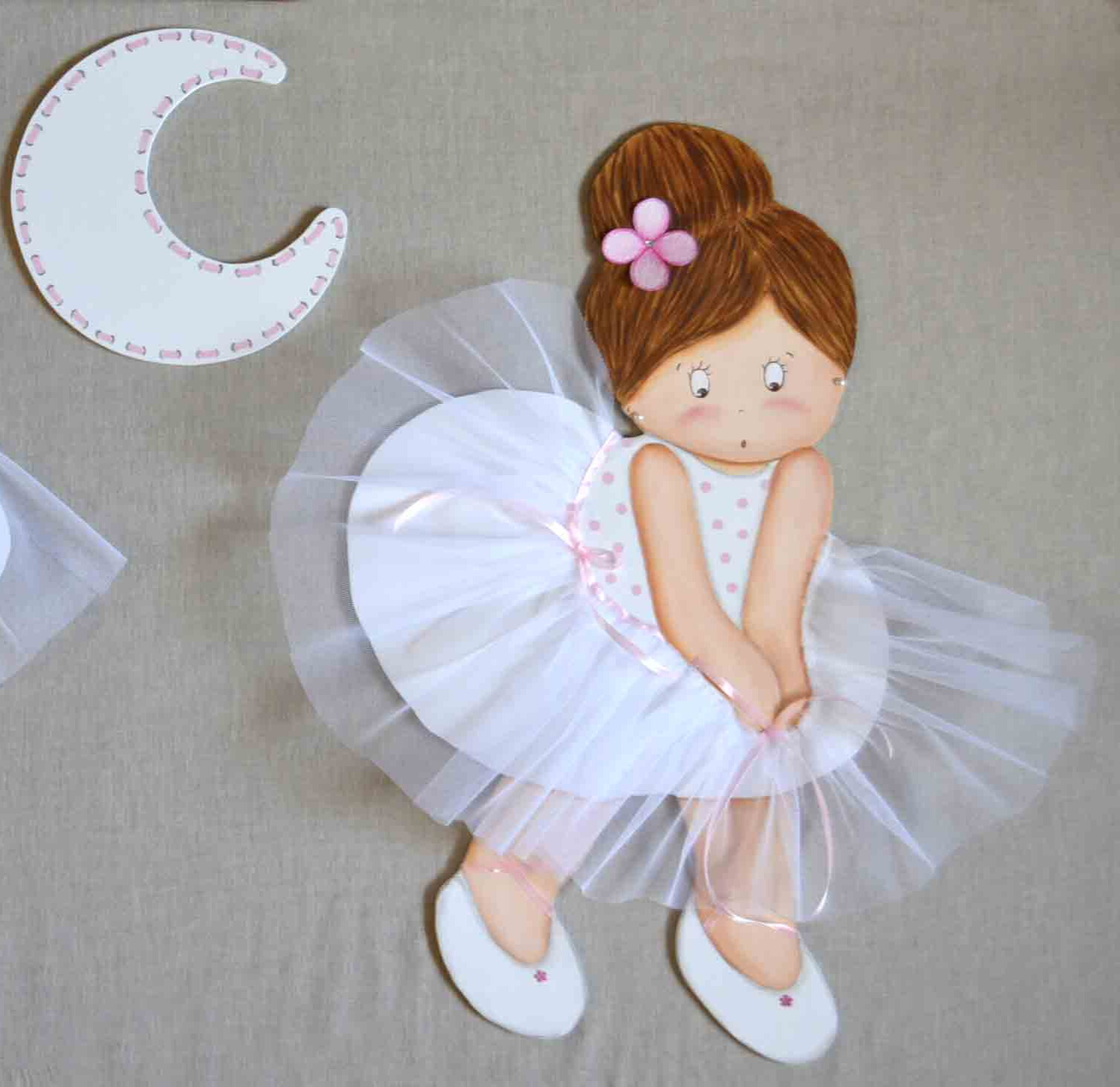 Siluetas de madera con temática bailarinas que crean un cuento en la pared. Incorporan detalles en relieve como los tutús de tul, flores, cintas, etc.. que las hace únicas!!