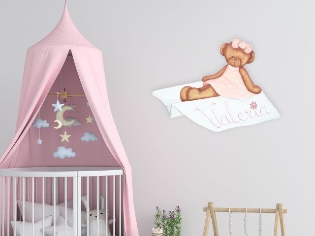 Las Siluetas Osita en Avión de Papel es muy amorosa puesto que tiene una protagonista que será la mejor compañera para una habitación de bebé niña. Se puede personalizar con el nombre de tú peque en el avión.